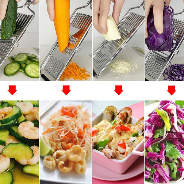 🧑‍🍳 Multifunctioneel ontwerp: Snijden, raspen en hakken met één tool—perfect voor salades, frietjes en snelle maaltijden.