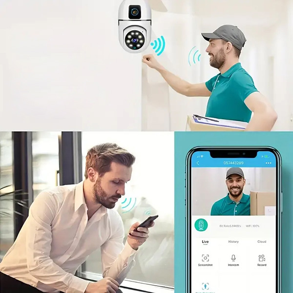 Met de intercomluidspreker van BULBCAM kun je via de mobiele telefoon rechtstreeks met iedereen buiten je deur praten. Je kunt ook instructies geven aan bezorgers of zelfs gasten begeleiden als je het druk hebt of weg bent, waardoor je bezoekers overal eenvoudig kunt beheren.