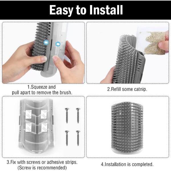 Katten kunnen wat tijd nodig hebben om aan deze hoekkattenborstels te wennen en je kunt hun interesse vergroten door een snufje kattenkruid toe te voegen (niet inbegrepen).