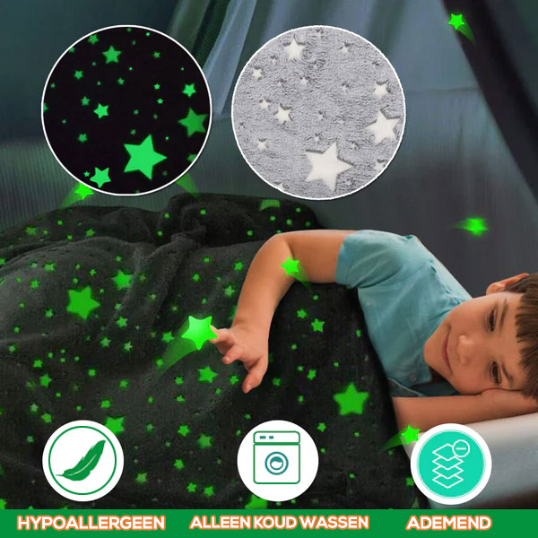 BLANKGLOW! Deze magische deken is gemaakt van lichtgevende materialen en brengt uw slaap naar een galactisch niveau! De lichtgevende materialen zullen ’s nachts een rustgevende lichtgroene gloed geven!