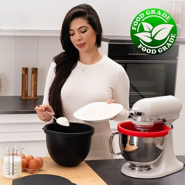 De flexibele siliconen voering past stevig in de kom en zorgt voor gelijkmatig en stabiel mixen tijdens gebruik.
