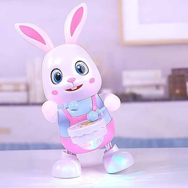 Activeer het konijntje en kijk hoe het vooruit loopt, met zijn staart kwispelt en schattige piepgeluidjes maakt!