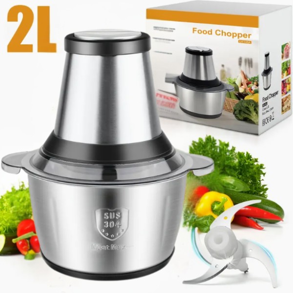⚡ 250W motor hakt fruit, groenten, vlees en ijs.