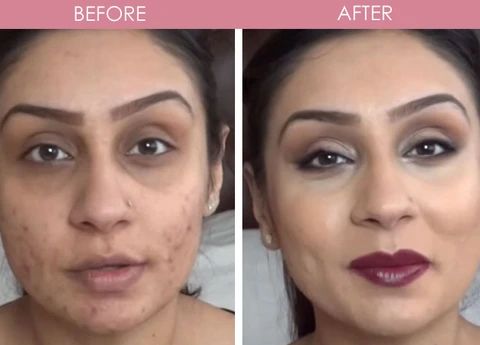 Het werkt als een make-up foundation om onvolkomenheden volledig te camoufleren inclusief rimpels, vlekken, acne, grote poriën, acne littekens en elke donkere vlek.