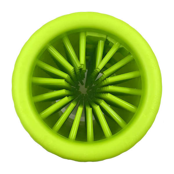 Dankzij het cilindrische ontwerp kun je moeilijk bereikbare plaatsen effectief wassen. Steek eenvoudig de poot van je hond in, draai hem en laat de siliconen borstelharen vuil en puin verwijderen. Geniet zonder gedoe van een brandschoon huis.