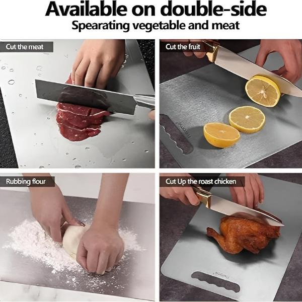 Traditionele snijplanken kunnen schadelijke chemicaliën zoals BPA en ftalaten bevatten die in uw voedsel lekken. VITABOARD is gemaakt van puur roestvrij staal, waardoor deze gezondheidsrisico’s volledig worden geëlimineerd. Geef uw gezin gemoedsrust bij elke maaltijd.