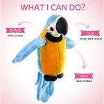 This is ARCHIE, ARCHIE can speak and sing, ARCHIE repeats no matter what language you speak or what content you say and it can record sound around it. The voice ARCHIE makes is very strange, it can change the original timbre of sound to make it in its voice. When ARCHIE is still, it’s an elegant parrot. While ARCHIE is speaking, it will shake its head and wave wings to make your child happy after opening switch. SHAKING DANCE: Turn on and talk to me. Ill be happy to talk to you and shake my body and wings. Our conversation will be more interesting.