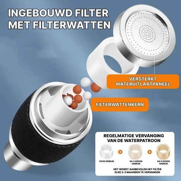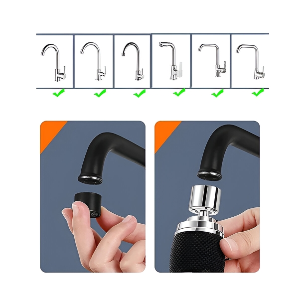 Geen loodgieter nodig! Verwijder gewoon je huidige beluchter en draai de FAUCETI adapter erop.
