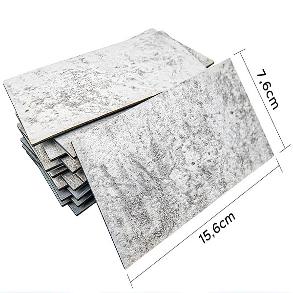 De rechthoekige vorm (15,6 x 7,6 cm) maakt verschillende aantrekkelijke patronen mogelijk. Elk pakket van 10 tegels beslaat ongeveer 0,12 vierkante meter, perfect voor creatieve ontwerpen.